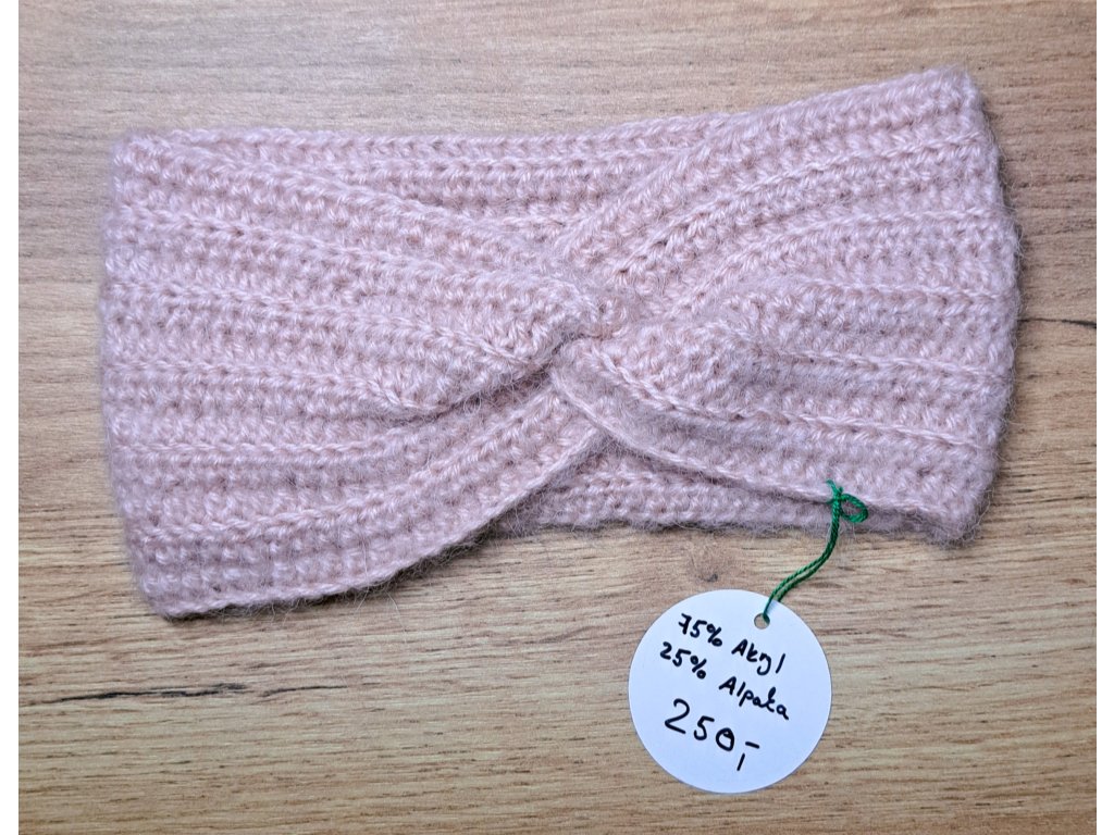Růžová čelenka - příze Himalaya Ultra Kasmir (75% akryl, 25% alpaka) - do teplejšího počasí, příjemná na dotek. Velikost M.