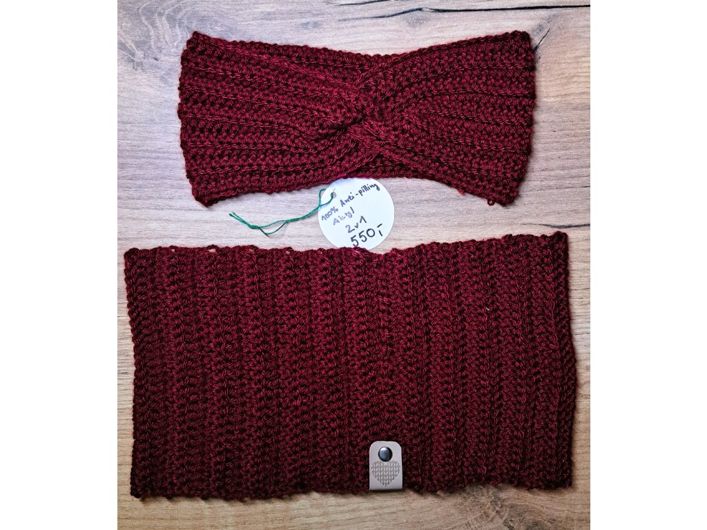 Bordó čelenka a nákrčník - příze Himalaya everyday (100% anti-pilling akryl) - certifikovaná příze pro citlivou pokožku, velmi příjemná na dotyk a nežmolkuje!